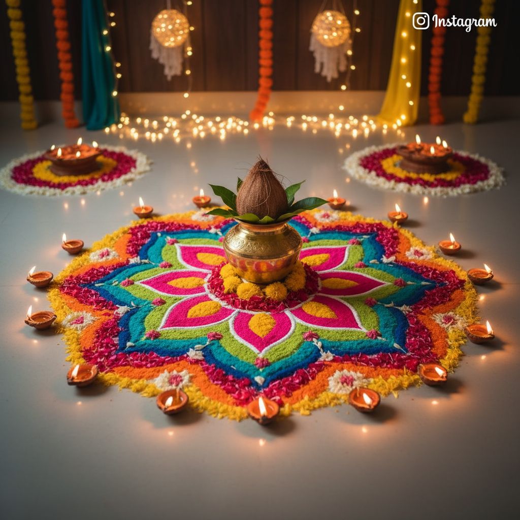 Rangoli is very important for both Diwali and Dhanteras. It gives the home positive vibes and attracts Goddess Lakshmi.