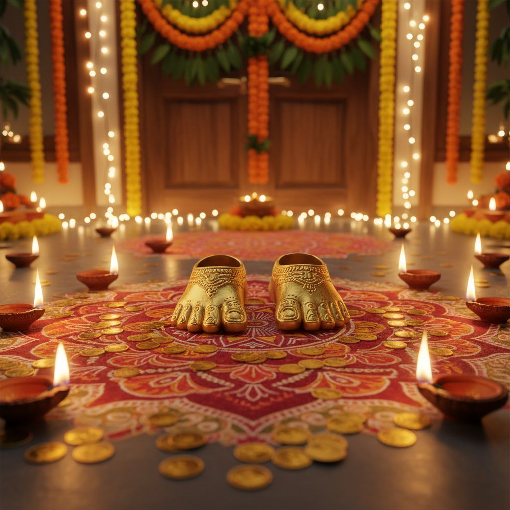 - Lighting a four-wick diya (a lamp with four wicks) at the entrance is auspicious.