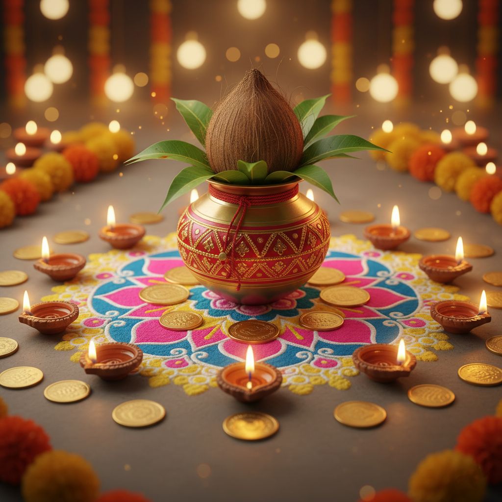 Whether you make a beautiful Dhanteras rangoli, decorate your home with Kalash Dhanteras rangoli designs, send Dhanteras wishes in Hindi or share new happy Dhanteras images – each activity brings the blessings of Maa Lakshmi.